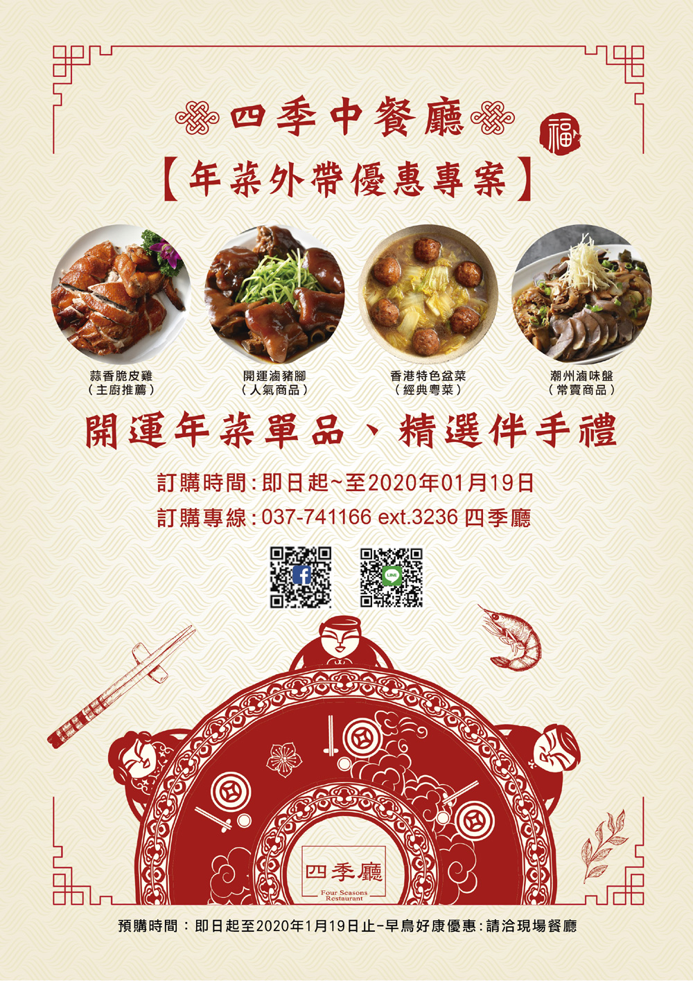 #四季中餐廳 #年菜 #外帶 #圍爐 #山城苗栗十八饗餚 #觀光局 #小鎮漫遊 #初二 #回娘家 #走春